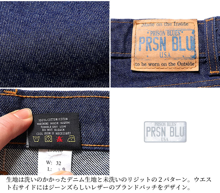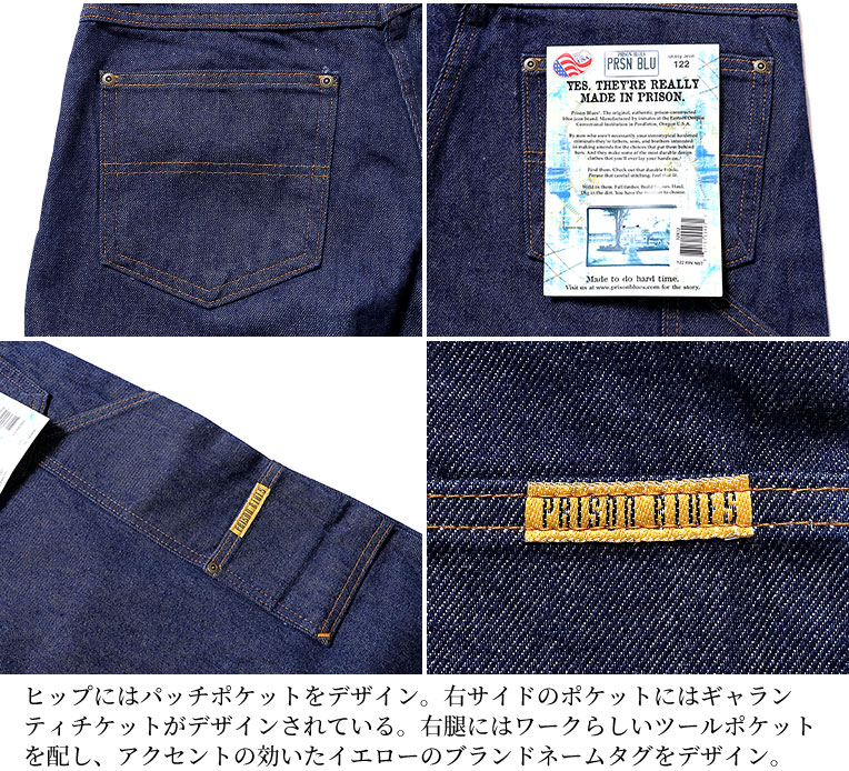 PRISONBLUES/プリズンブルースPRBS191WORKJEAN7-POCKET/ワークデニムジーンズ7ポケット-全3色-USAアメリカDENIMギャランティチケットメンズメタルボタンリベットポケットネームタグワークパンツ洗いリンスドワイドリラックスフィット[PRBS191]