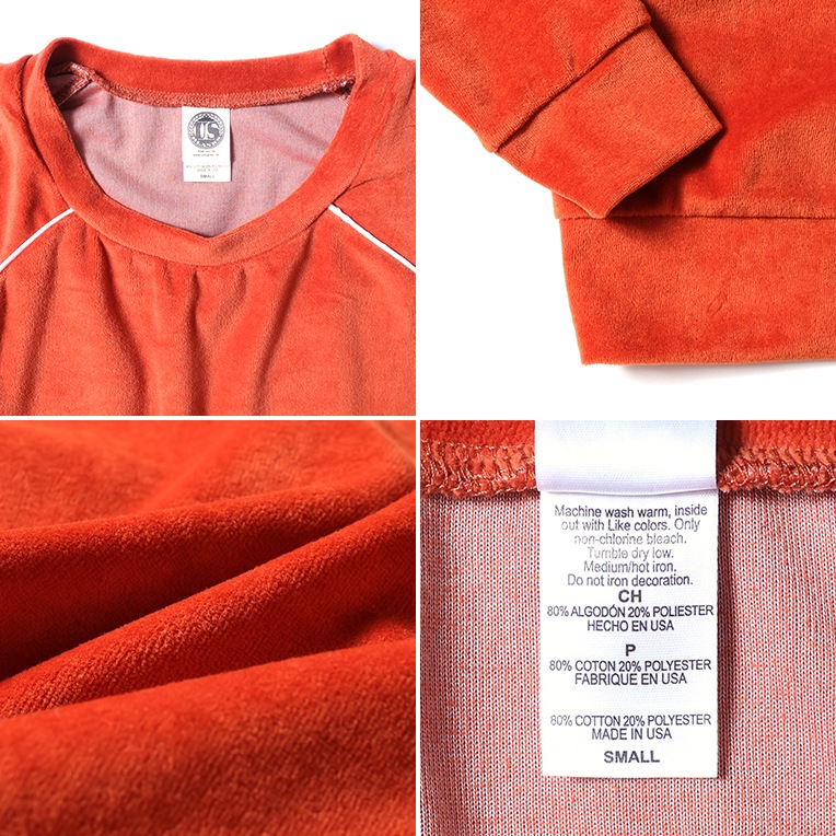 | 商品説明 | 7.6オンスのプラッシュベロア生地を使用したクロップ丈のロングスリーブラグランスウェット。コントラストのあるパイピングを施したラグランシームが程よいアクセントに。 |
